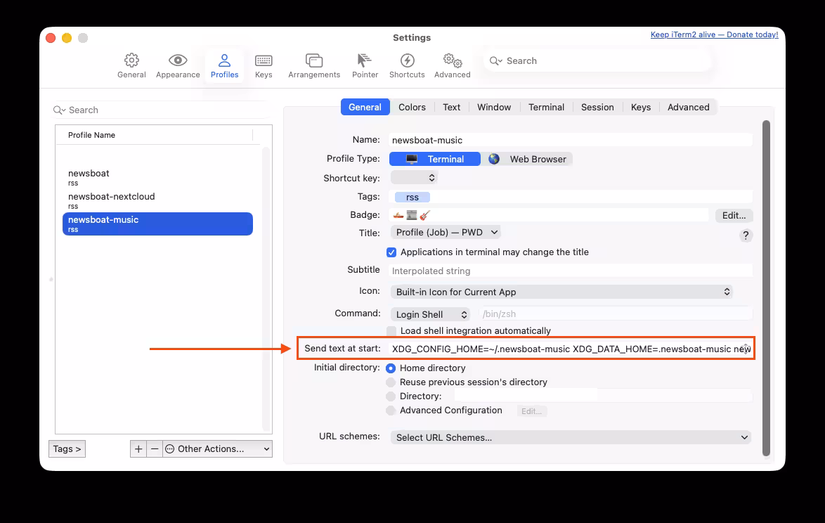 iTerm Profil newsboat-music