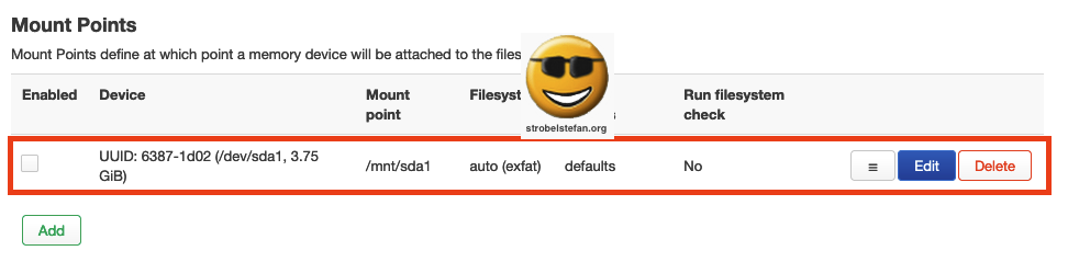 The USB storage device can get mounted by OpenWrt. Click Enabled and Save & Applythe changes.