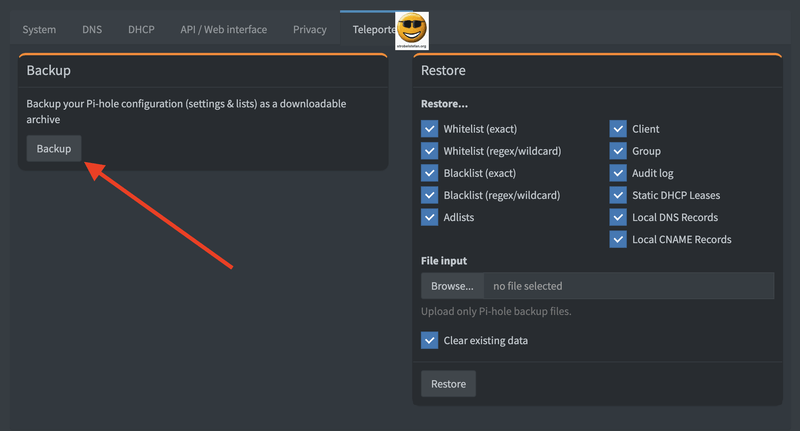 Die Konfiguration eines Pi-hole kann mit dem Tool Teleporter sehr einfach über die Weboberfläche oder die CLI gesichert werden.