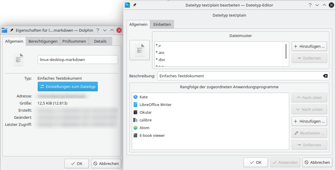 KDE lässt eine unzählige Einstellung zu, so auch an den MIME-Typen. Nun habe ich aber das Problem, dass mein favorisierter Markdown-Editor Typora nicht meine Markdown-Dateien öffnet, sondern Kate die Aufgabe übernimmt.