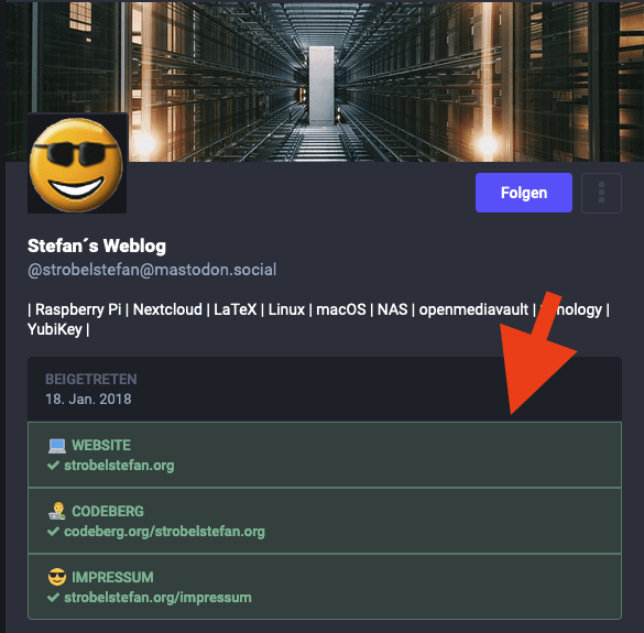 Das funktioniert aber nicht nur mit der eigenen Website, sondern auch mit anderen Diensten. Ich habe auch noch mein Codeberg-Konto ( 👉 https://codeberg.org/strobelstefan.org)verifiziert.