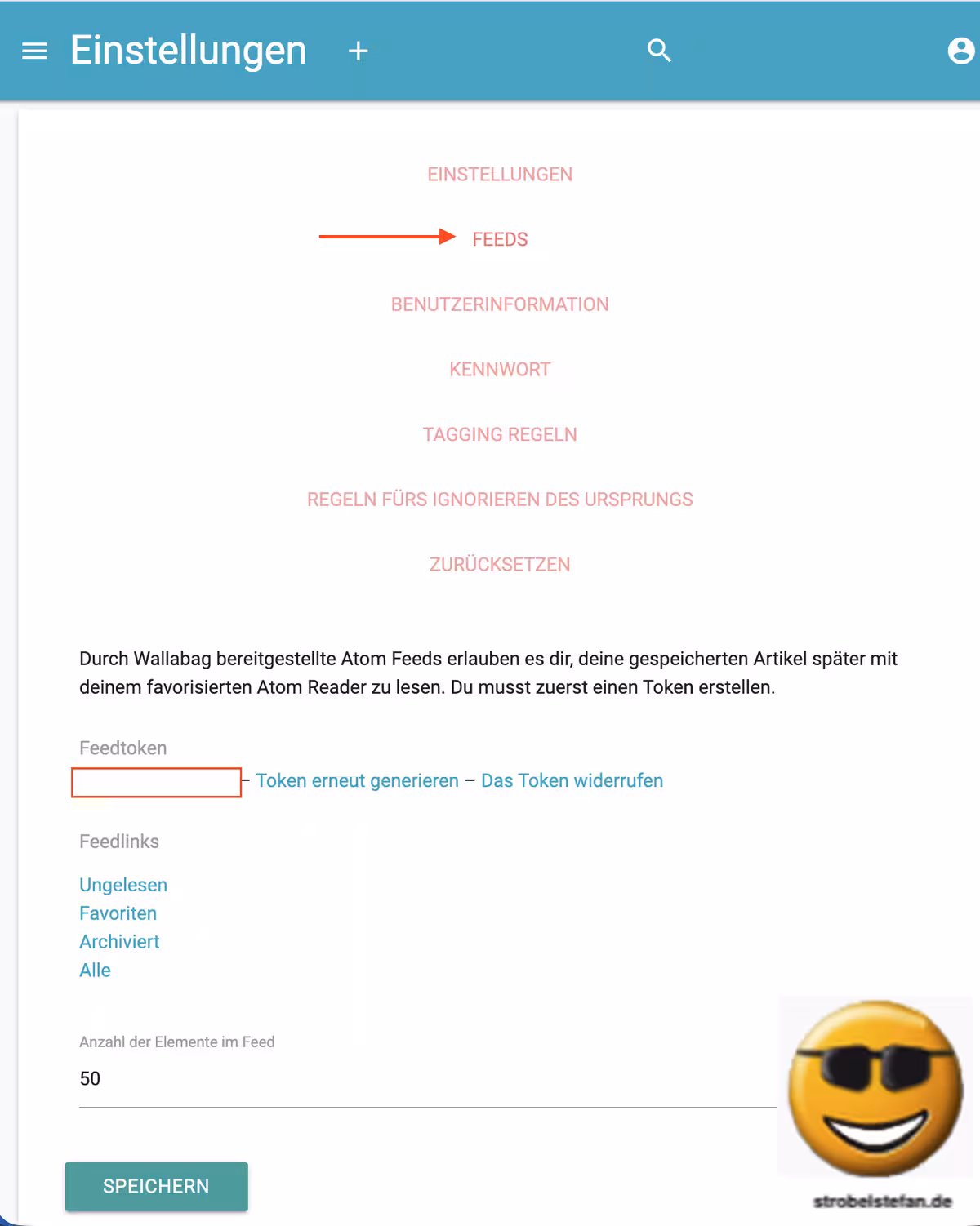 Wallabag - Feed-Einstellungen