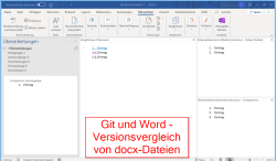 Git kann auch binäre Dateiformate, wie z.B. das Dateiformat docx, in seinen Repositories verwalten und die Versionsverwaltung übernehmen. Ein kleines Problem besteht bei den Vergleichen (diff) der Versionen. Git ist eigentlich dafür gedacht reine Flat files zu managen und nicht für binäre Dateien. Mit ein paar kleinen Handgriffen ist es jedoch möglich Git und Word miteinander zu verbinden. Vergleiche zwischen Versionen von verwalteten docx-Dateien ist damit sehr einfach möglich. Durch die Verwendung von Git zur Versionsverwaltung von Word-Dateien (docx) ermöglicht es den Benutzern die Vorzüge von Git zu nutzen.