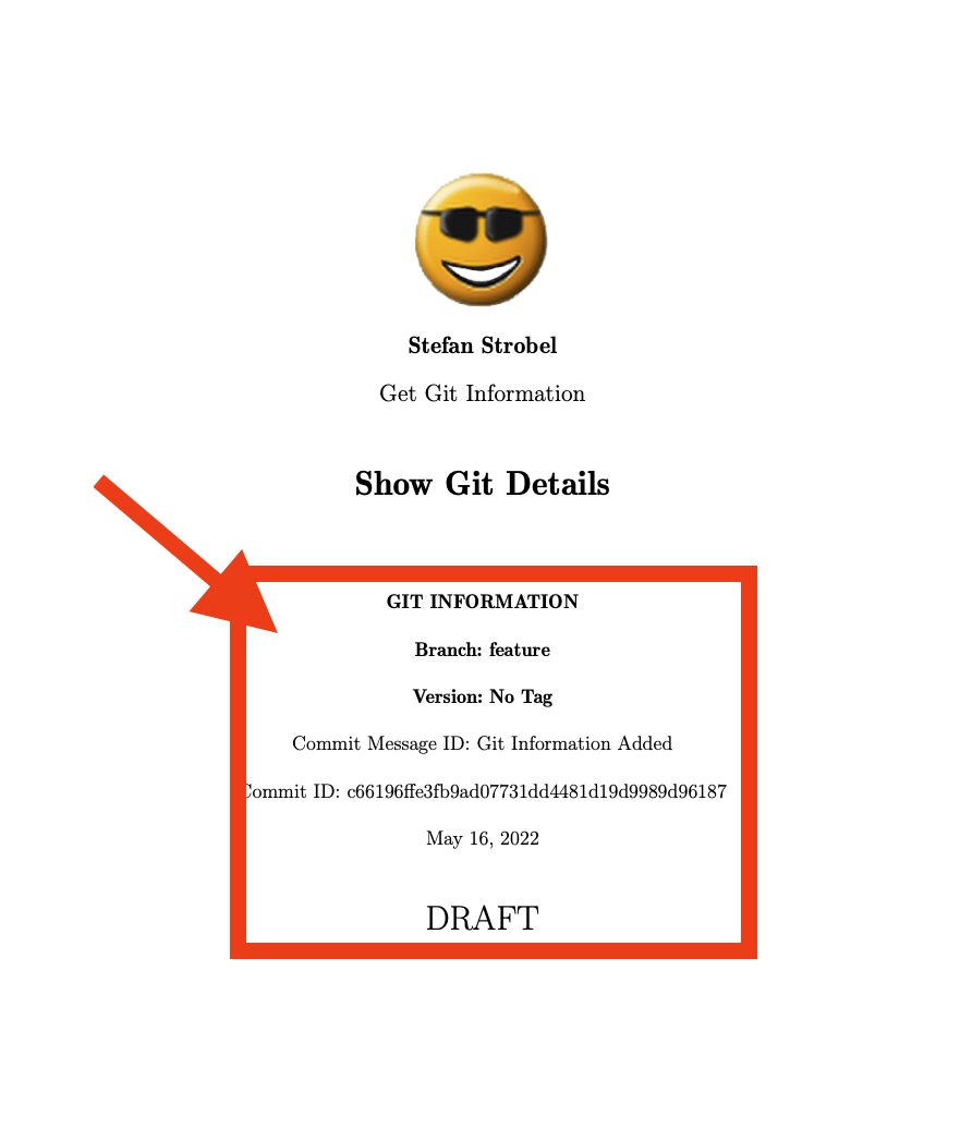 Git-Informationen, wie Branch, Tags, etc. lassen sich automatisch in LaTeX-Dokumenten übernehmen und anzeigen.
